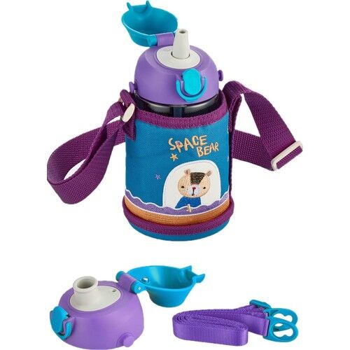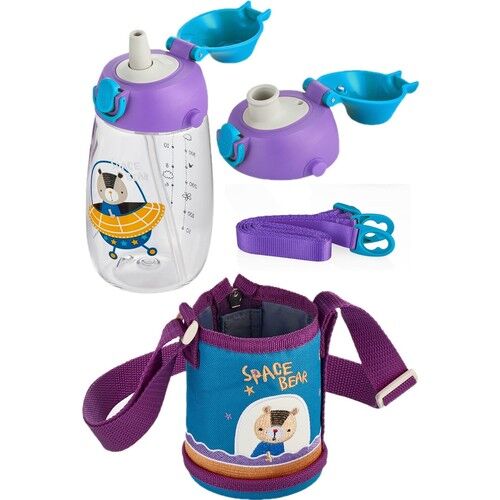 Uzspace 480ml Özel Koruma Kılıflı İki Ayrı Kapaklı Pipetli/Pipetsiz Askı AparatlıTritan Bpa İçermeyen Çocuk Su Matarasıyla buluşturuyor.