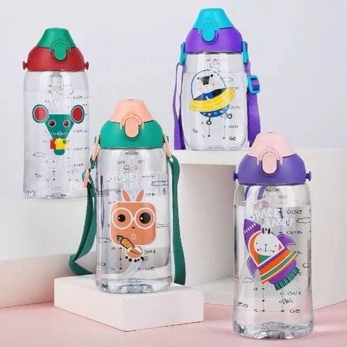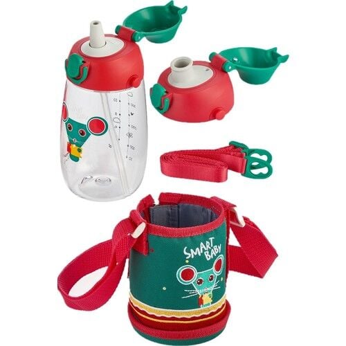 Uzspace 480ml Özel Koruma Kılıflı İki Ayrı Kapaklı Pipetli/Pipetsiz Askı AparatlıTritan Bpa İçermeyen Çocuk Su Matarasıyla buluşturuyor.