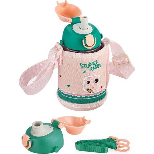 Uzspace 480ml Özel Koruma Kılıflı İki Ayrı Kapaklı Pipetli/Pipetsiz Askı AparatlıTritan Bpa İçermeyen Çocuk Su Matarasıyla buluşturuyor.