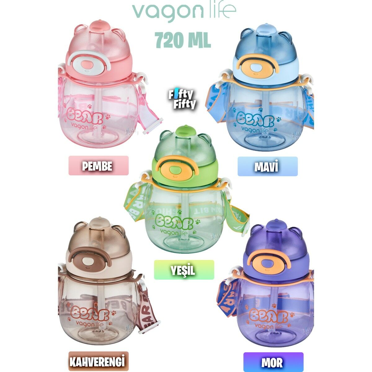 **FiftyFifty siz değerli müşterilerimiz için çok sevdiğiniz Vagonlife ailesinin Pipetli 720 ML Boyun Askılı Çocuk Su Matarası 5 Farklı Renk- ilanlarını tüm renklerini satın almada kolaylık için tek ilana getirdi.