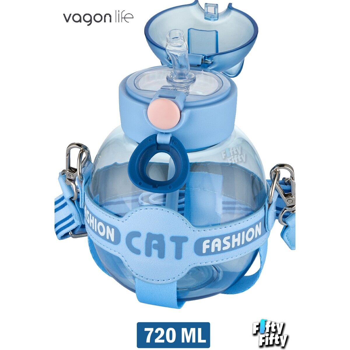 Vagonlife Pipetli 720 ML Boyun Askılı Çocuk Su Matarası -Cat Fashion-FFVGN2031-720ML