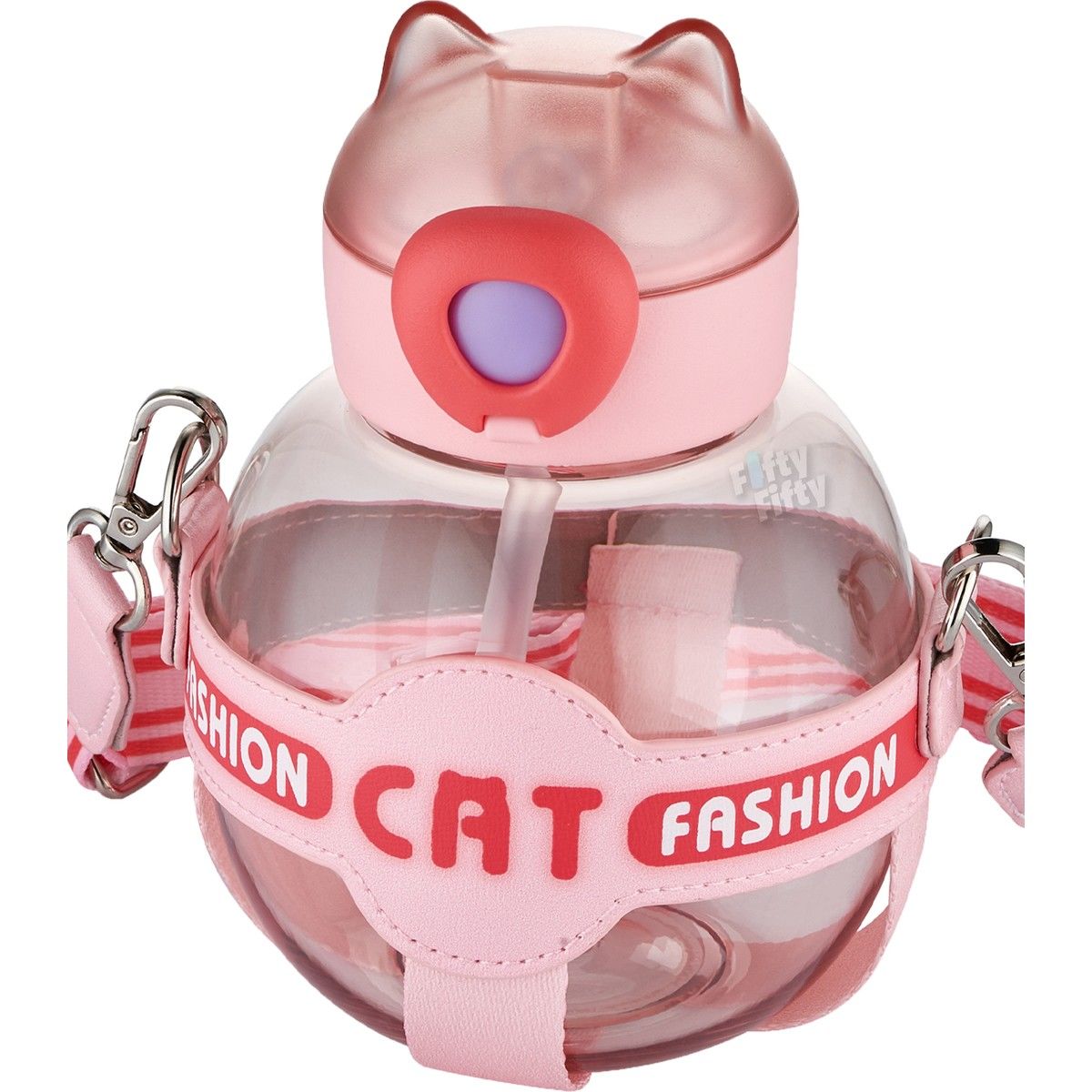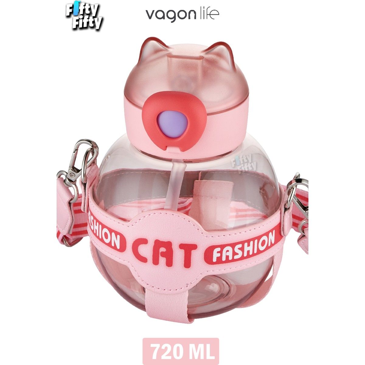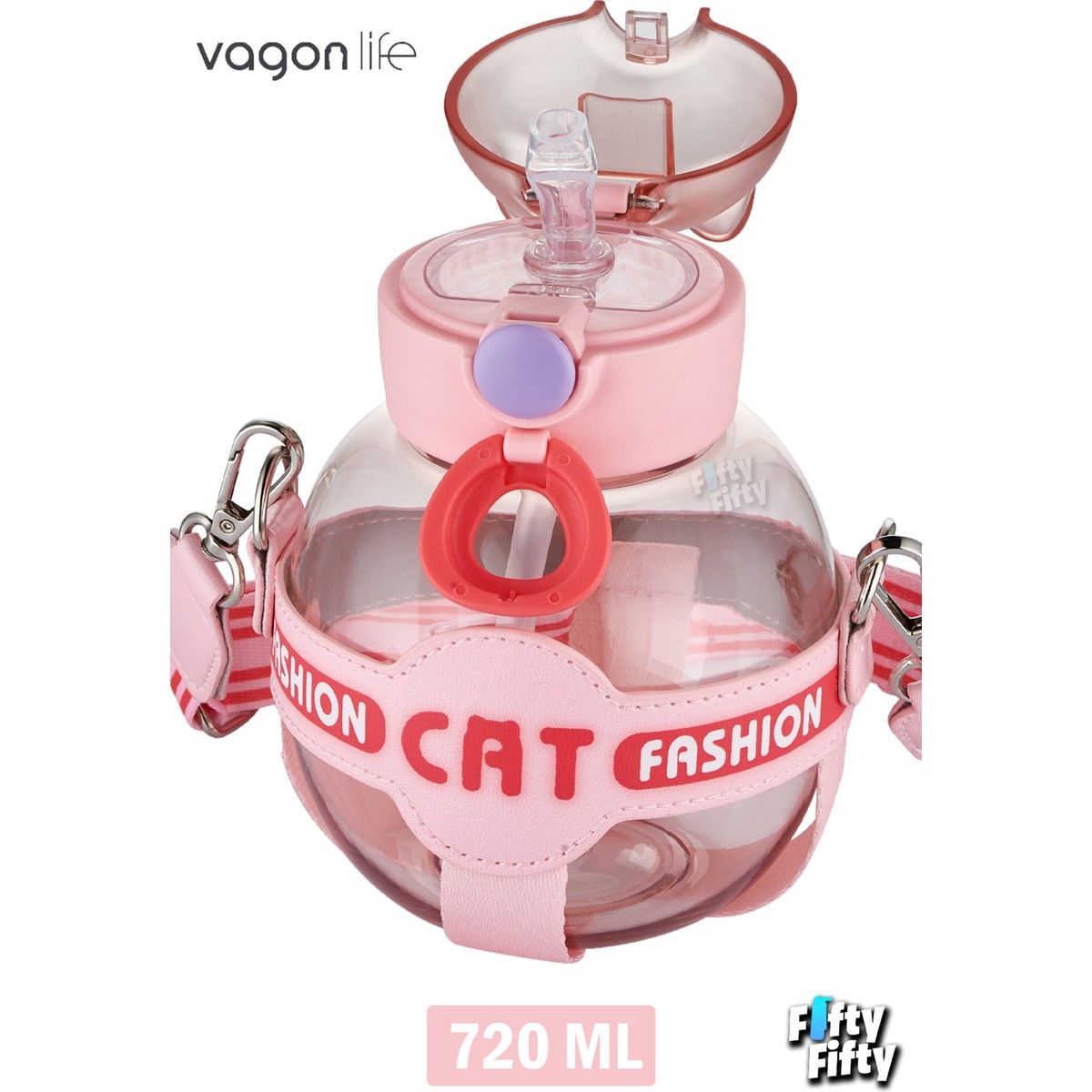 Vagonlife Pipetli 720 ML Boyun Askılı Çocuk Su Matarası -Cat Fashion-FFVGN2031-720ML