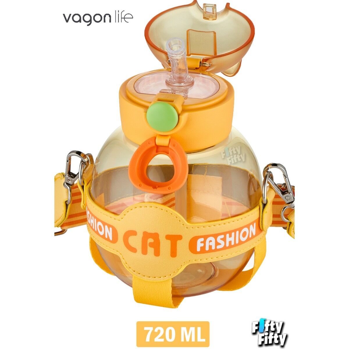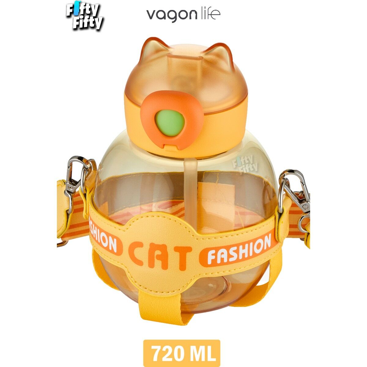 Vagonlife Pipetli 720 ML Boyun Askılı Çocuk Su Matarası -Cat Fashion-FFVGN2031-720ML