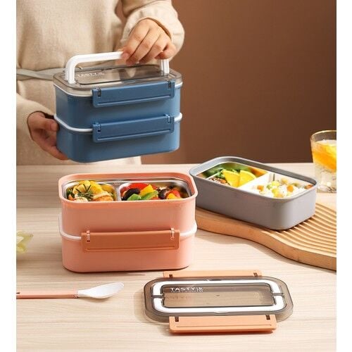 Vagonlife Bento 1600ML Lunchbox Yeni Koleksiyon 2 Katlı 4 Bölmeli Çelik Sefer Tası Yemek Kutusu