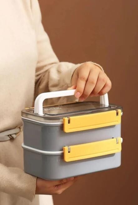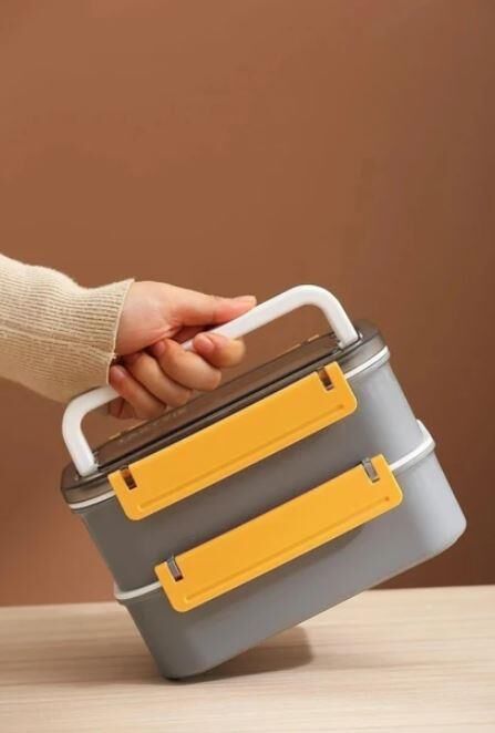 Vagonlife Bento 1600ML Lunchbox Yeni Koleksiyon 2 Katlı 4 Bölmeli Çelik Sefer Tası Yemek Kutusu Gri