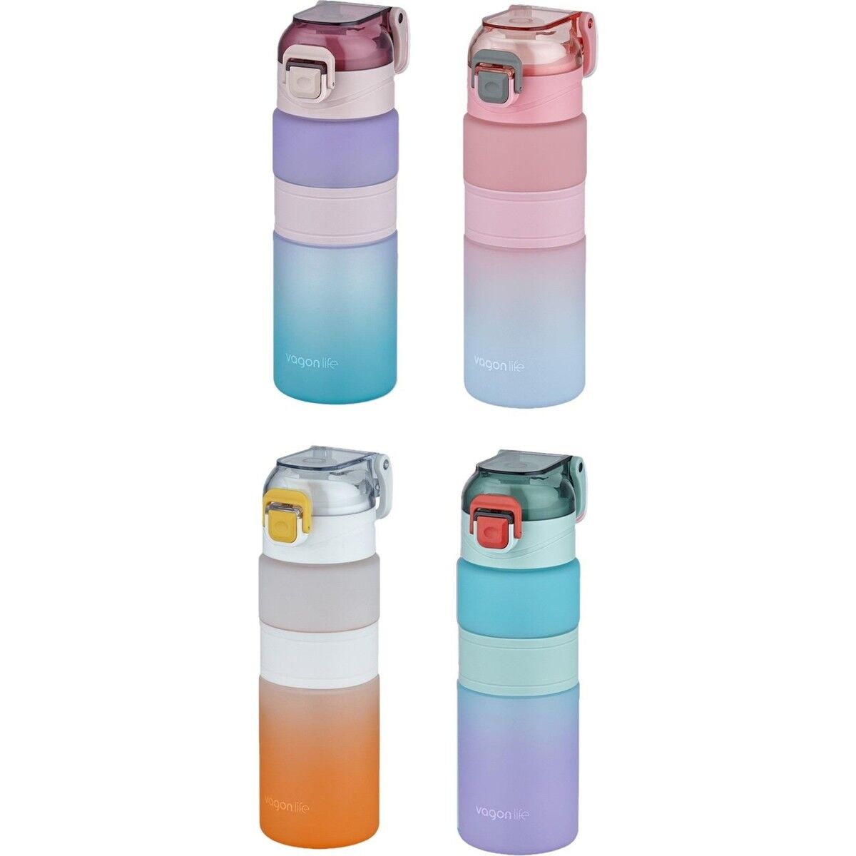 **FiftyFifty siz değerli müşterilerimiz için çok sevdiğiniz Vagonlife ailesinin Vagonlife Çift Renk 600ml SoftTouch Kaydırmaz Silikon Gövde Rahat İçim-Pipetsiz-Motivasyon Su Mataralarını