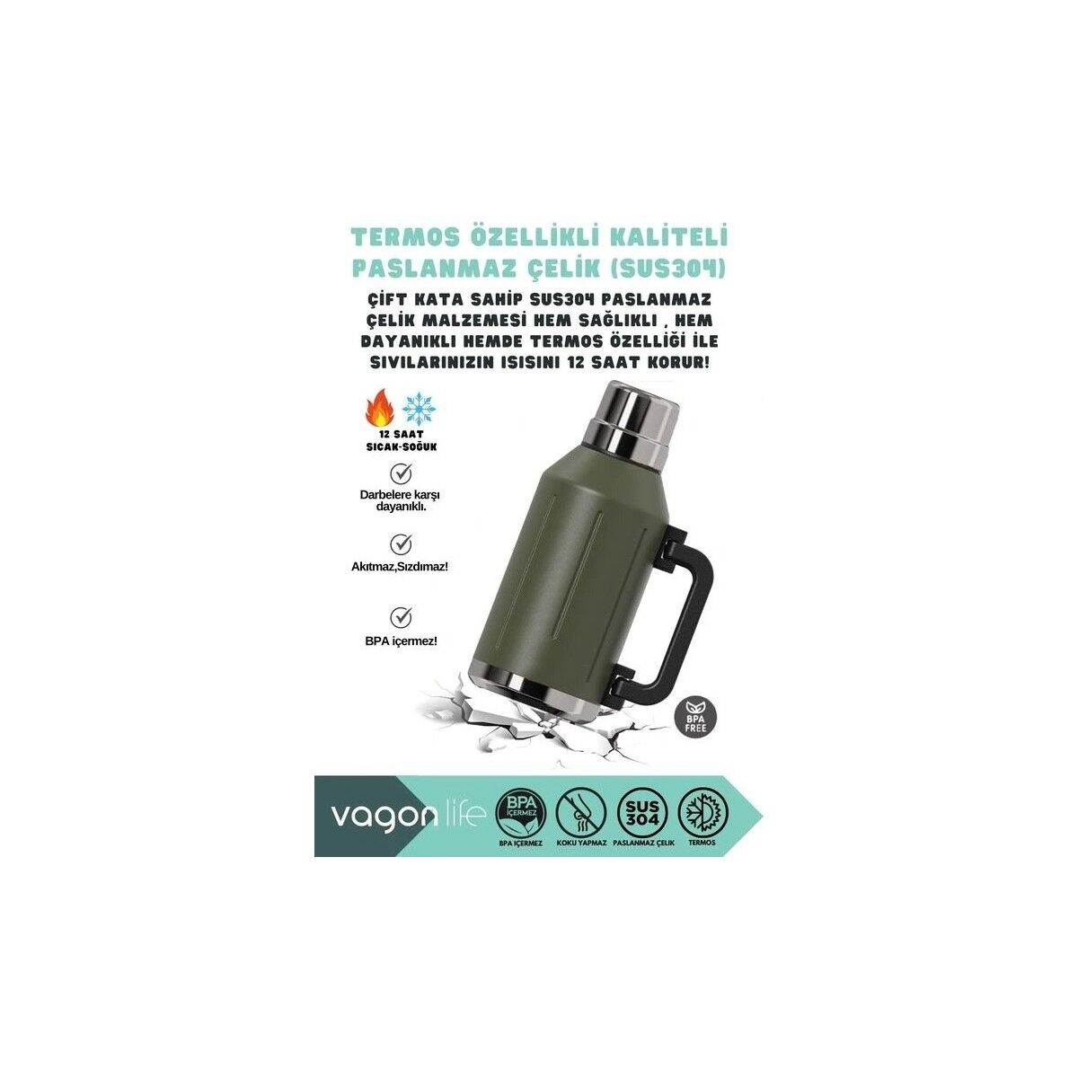 VAGONLİFE HAERS KULPLU PASLANMAZ ÇELİK TERMOS VGN1004 1200 ML MOSS GREEN* 1.200 Litrelik sağlam ve şık termosunuz kamp, seyahat ve ofiste her an yanınızda bulundurmak isteyeceğiniz bir tasarıma sahiptir.