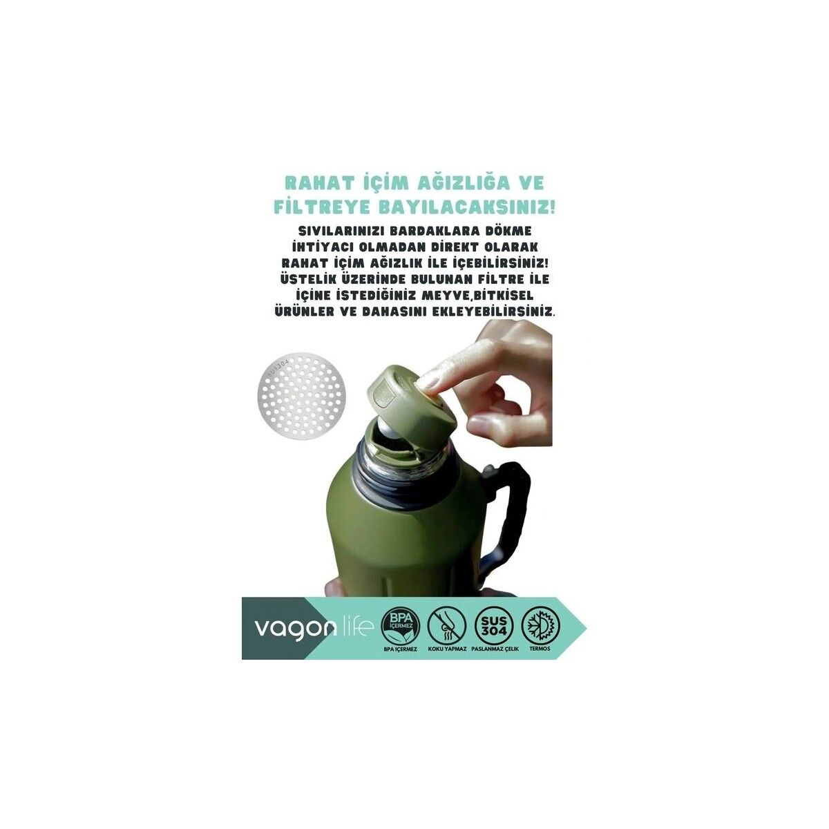 * Termos BPA içermeyen, koku yapmayan 304 paslanmaz çelikten üretilmiştir.