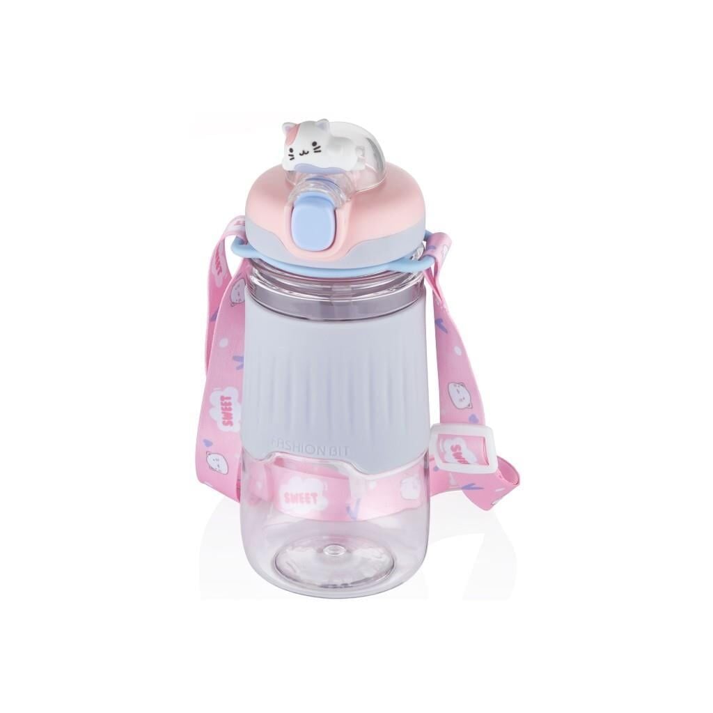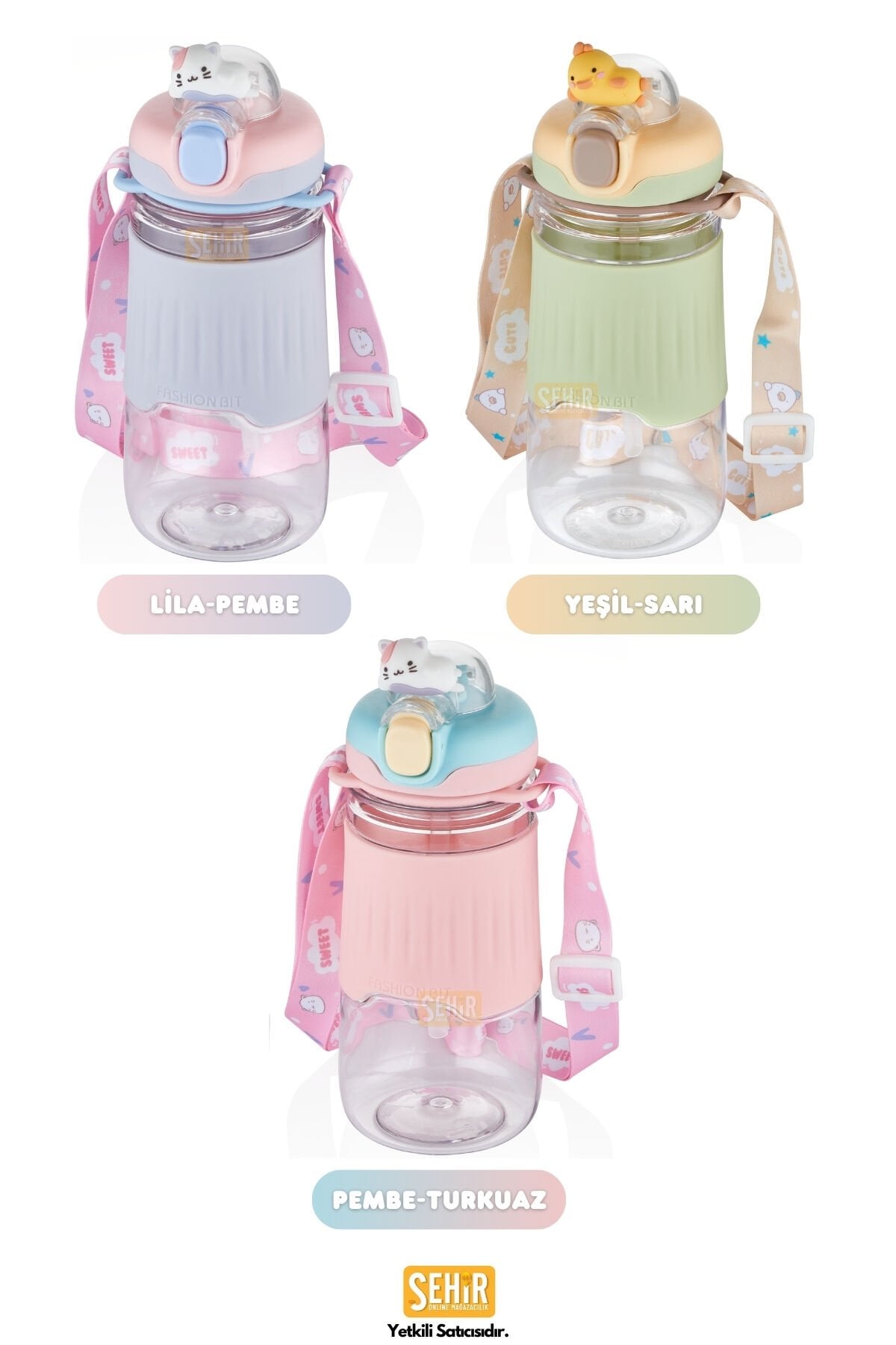 Vagonlife 600ml Sevimli Hayvanlar Figürlü Silikon Pipetli Özel Askılı Polikarbon Çocuk Su Matarası