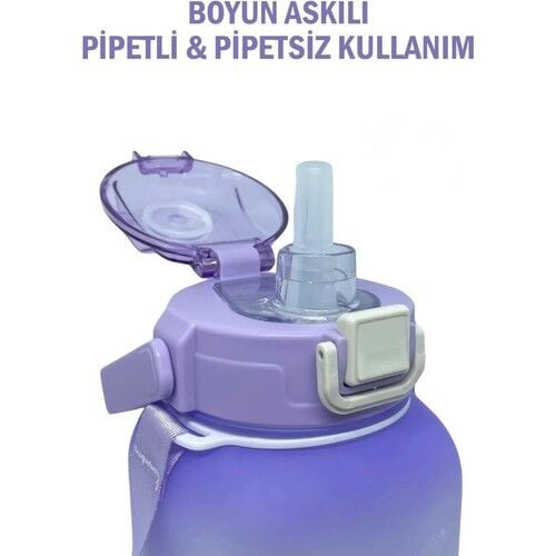 Vagonlife VGN2275-T Mor 1100ML Çocuk Pipetli/pipetsiz Kullanım Su Matarası -Askılı- -Çıkartma Hediyeli