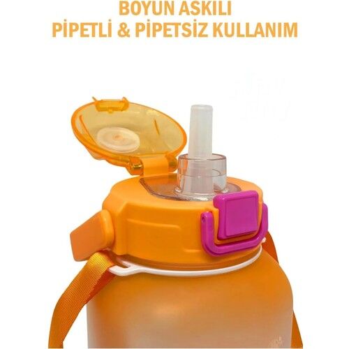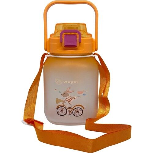 Vagonlife VGN2275-T Turuncu 1100ML Çocuk Pipetli/pipetsiz Kullanım Su Matarası -Askılı- -Çıkartma Hediyeli