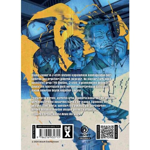Blume Japan’ın J-ctOS sistemi uygulamaya konduğundan beri şehirde suç örgütleri giderek büyüyor. Bu olayları fark eden hacktivist grup TYO DedSec, J-ctOS’a güvenmeyen dedektif Gouda’nın işbirliğiyle delil verilerini kurtarmaya çalışıyor. Ancak önlerine büyük engeller çıkıyor. Fütüristik evreni, ayrıntılı arka planlarla kusursuz bir şekilde görselleştirmeyi başarmış harika bir manga. Eğlenceli bir aksiyon filmi adeta: şansları hiç yokmuş gibi görünürken birden dünyaya meydan okuyan güçsüz kurbanlar… — Lauren Ortini, Anime News Network
