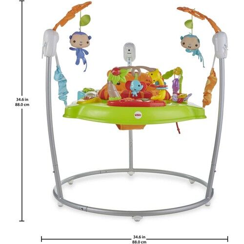 Hop hop zıpla! Bu Jumperoo eğlencesinde orman dostları ile bebeğinizin keşfedeceği o kadar çok şey var ki! Müzikler, ışıklar ve eğlenceli sesler her zıplayışında bebeğinizi ödüllendirir! Döner koltuk bebeğinize oyuncaklar, aktiviteler ve çevresindeki arkadaşları için 360° erişim sağlar. Bunlar arasında baş üstü yumuşak maymunlar, çemberler, çıngıraklar, boncuk çubuğu ve çok daha fazlası var. Hepsi bebeğinizin ulaşabileceği yerdeler. Bebeğiniz yüksek noktalara ulaşır, oyuncakları tutar, hareket eder ve zıplayabilir! Bunların tümü bebeğinizin motor becerilerinin gelişmesine yardımcı olur. Saklamak ve taşımak için kolayca katlanabilir.