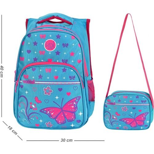 Waddell Bag Üç Bölmeli İlkokul Okul Çantası - Kız Çocuk - Mavi-Pembe