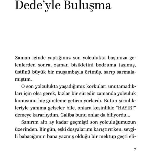 Zamanda Kaza - Zaman Bisikleti 3 - Bilgin Adalı Zaman Bisikleti’nin merakla beklenen bu üçüncü kitabında, kendinizi yepyeni serüvenlerin içinde bulacaksınız. Sevilen yazarımız Bilgin Adalı, artık “çocuk klasikleri” arasına girmiş olan Zaman Bisikleti dizisinin üçüncü kitabında, yepyeni bir kurgu oluşturuyor. “Geçmiş zaman içinde hapis kalsak ne yapabiliriz?” sorusunun yanıtını arıyor. Yağmur, Damla, babaları ve annelerinin kendi zamanlarına dönemeyince yaşadıkları serüvenler anlatılıyor bu kitapta. Elbette Çuka ile Anin de yanlarında. Modern insanlar, yüz bin yıl öncesinin koşullarında nasıl yaşarlar? Neler gelebilir başlarına? Elinizden bırakamadan, bir solukta okuyacağınız bir kitap...